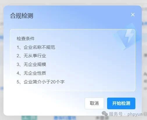 1.企业信息完善度筛选企业未设置行业、性质、规模等基本信息默认识别为信息未完善2.资质认证筛选以上便于信息自查,快速检索相关不合规信息